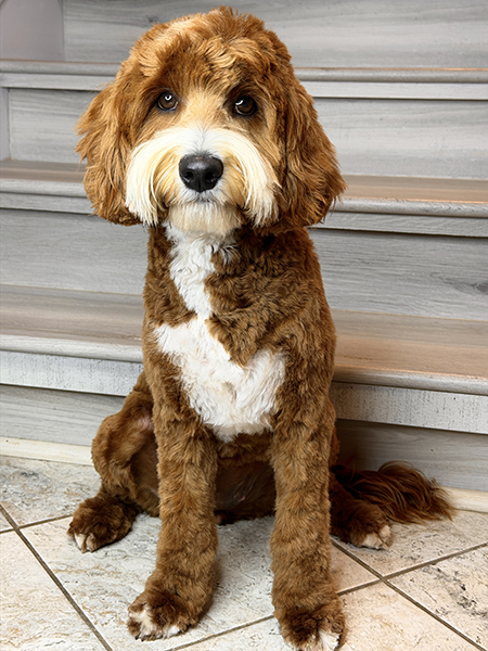 Lexi is a miniature-sized Labradoodle with a striking red coat and an even more impressive personality.