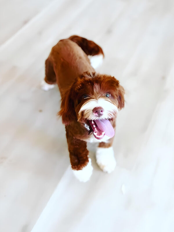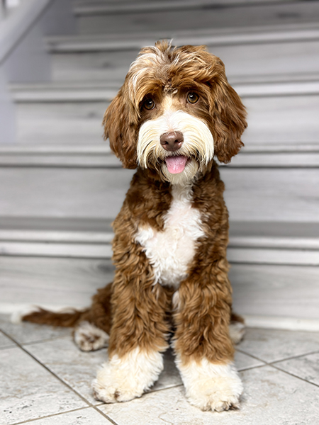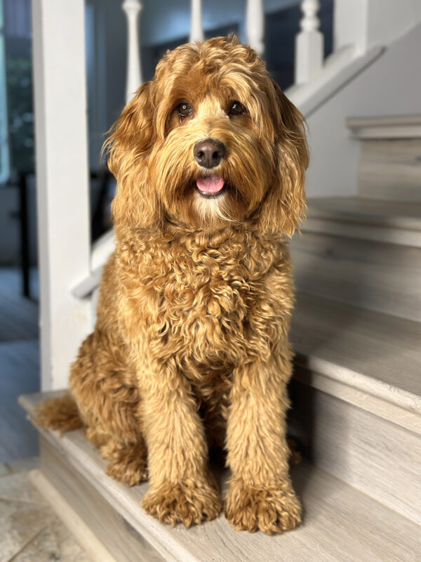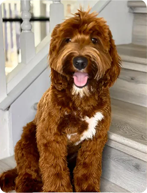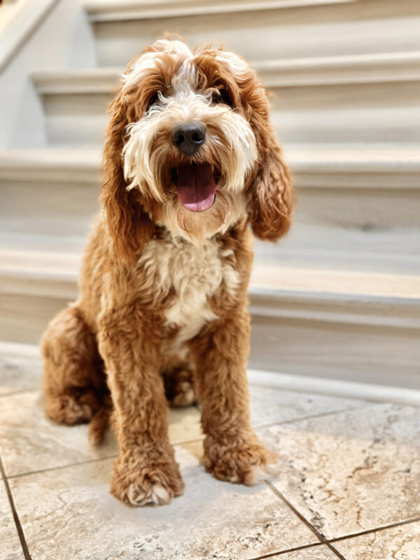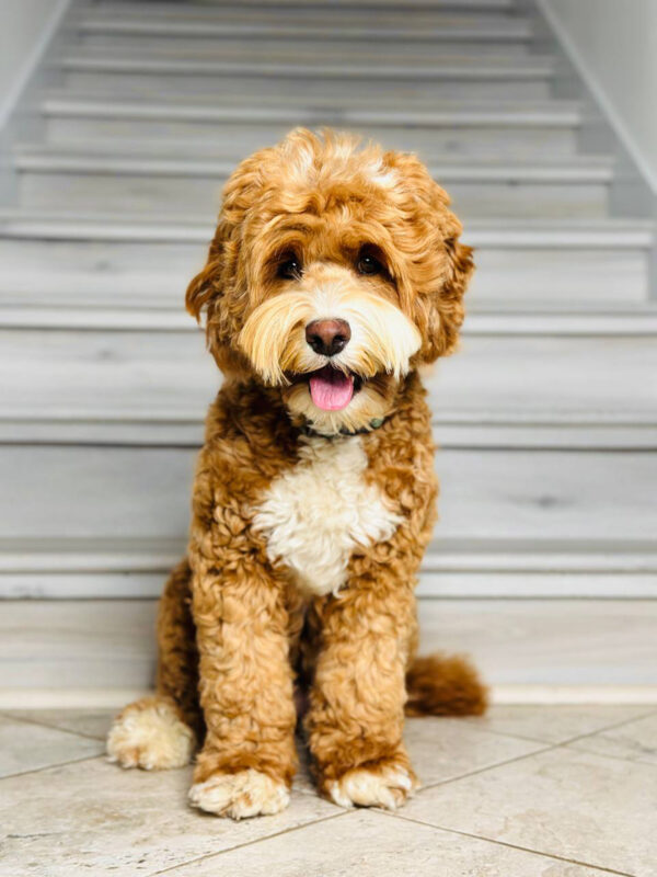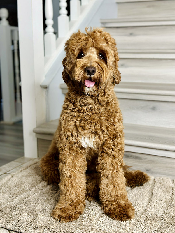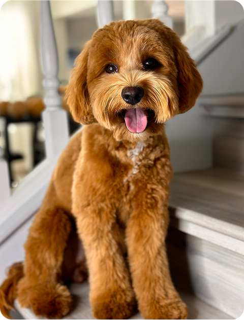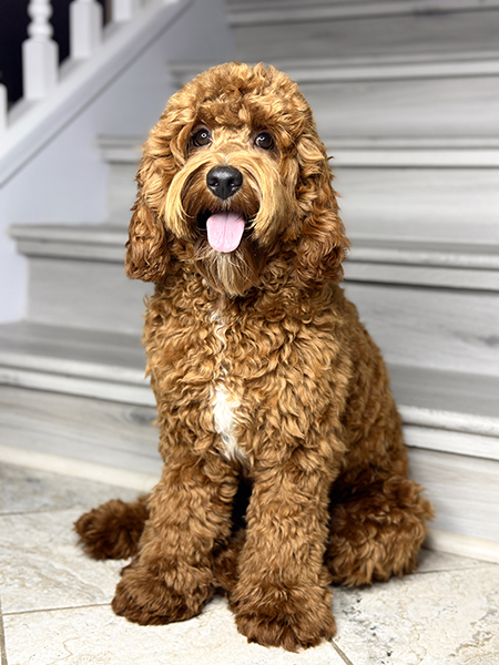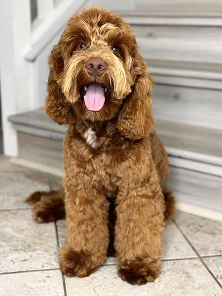 Lexi is a miniature-sized Labradoodle with a striking red coat and an even more impressive personality.